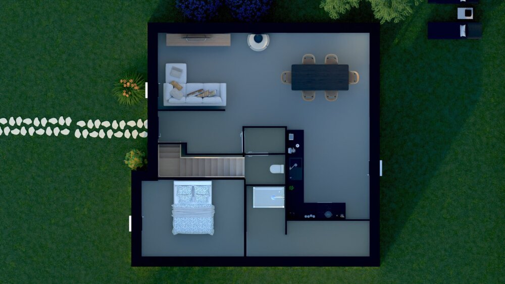 Grâce à sa conception moderne, cette maison associe efficacité énergétique, circulation fluide et optimisation des volumes. Ses larges ouvertures baignent les pièces de lumière naturelle, créant une atmosphère douce et agréable.