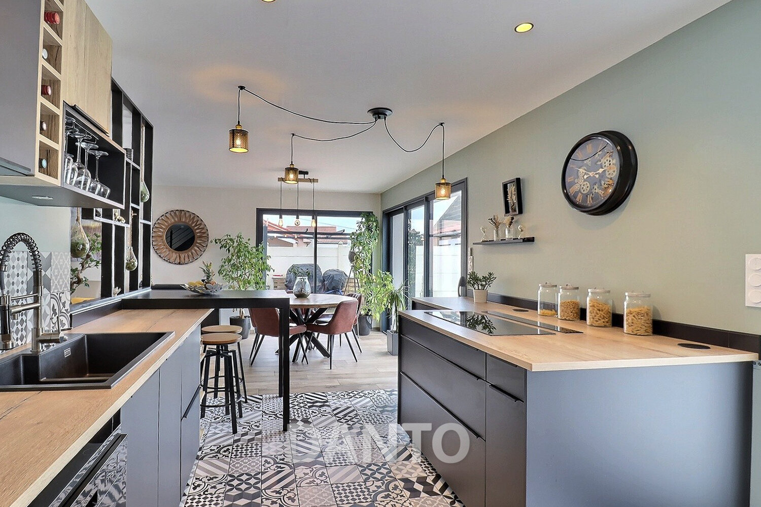 Dès l’entrée, un espace d’accueil avec placard de rangement vous guide vers une vaste pièce de vie baignée de lumière. La cuisine, aménagée et équipée, s’impose comme le véritable cœur de la maison : spacieuse, fonctionnelle et conviviale, elle bénéficie d’un accès direct à une belle terrasse, idéale pour profiter des repas en extérieur ou des soirées entre amis.