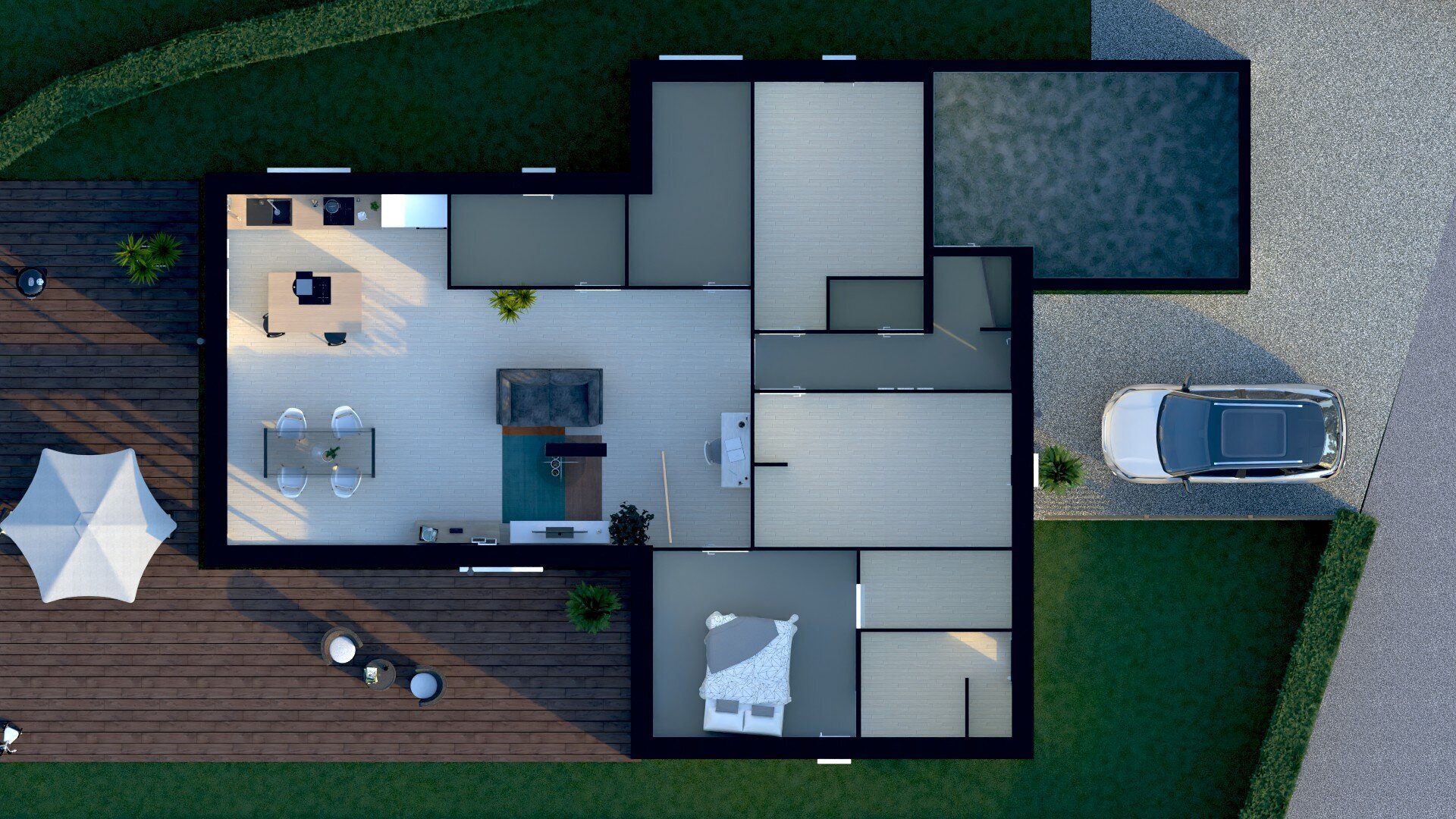 Conçue pour allier esthétique et confort, cette maison de plain-pied saura séduire par son espace de vie lumineux, son plan optimisé, et ses prestations modernes.