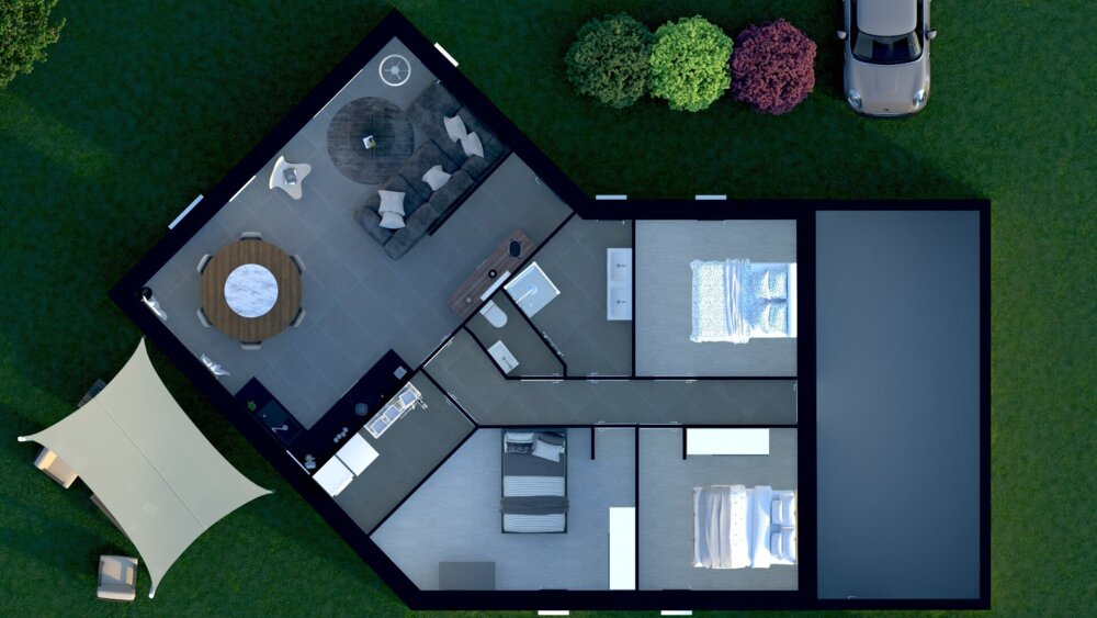 Dans un environnement calme et verdoyant, découvrez cette maison contemporaine de plain-pied de 90 m², à la fois fonctionnelle et lumineuse, pensée pour une vie de famille sereine.